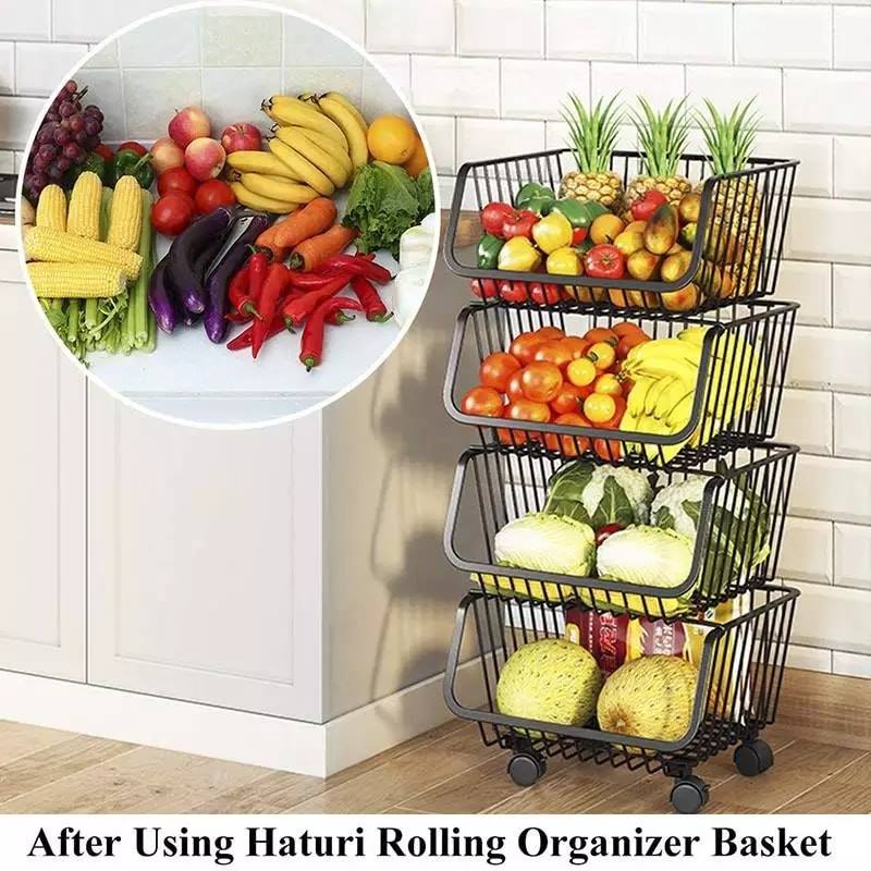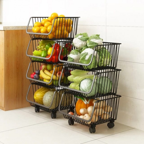 This storage bucket is made of high-quality carbon steel, which is a stable and durable gap storage rack. It can be placed in any narrow space in the kitchen, bedroom, etc., saving room space. It will meet your home kitchen's long-term storage needs. It has 4 durable wheels of which 2 are lockable so it is easy to roll and stops steadily anywhere. This storage basket will be a perfect storage solution for bins of potatoes, carrots, coffee, garlic, and onions.