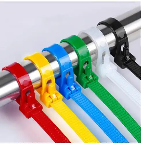 Buckle self-locking design Each zip tie has a durable self-locking mechanism that locks very securely and will not budge over time, and the locking teeth stop the cable tie at the desired length. Easy to use and straight to the point. The loose buckle design is adopted, which solves the one-time use characteristic of ordinary cable ties, and the loose buckle design allows the cable tie to be reused.