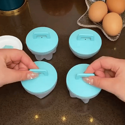 - Apply oil to the molds, crack an egg into each cup, cover and seal, then cook in a pot. Heat for 12-15 minutes, remove, cool in water for 40 seconds, and gently squeeze the eggs out.