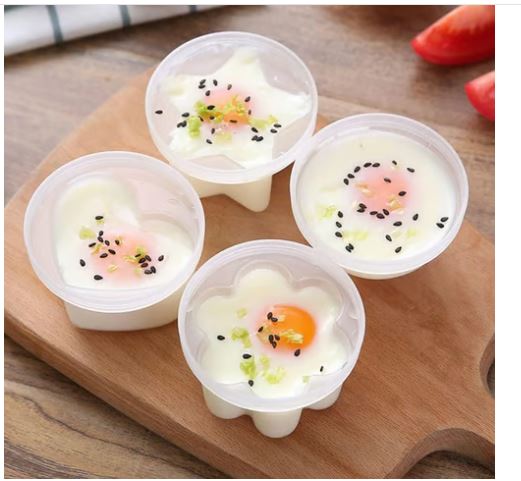- When the eggs are poured out, they have different shapes (round, star, flower, heart), small and cute. Enjoy perfectly poached eggs every time with this poached egg mold.
