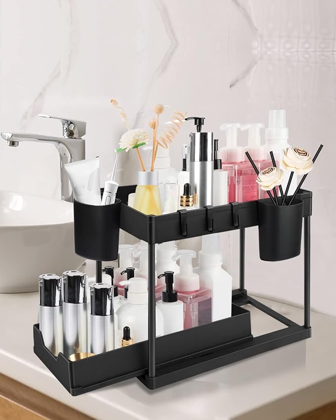 2 Tier Sliding Cabinet Organizer, Pull Out Under Sink Storage, Bathroom Counter Organizer