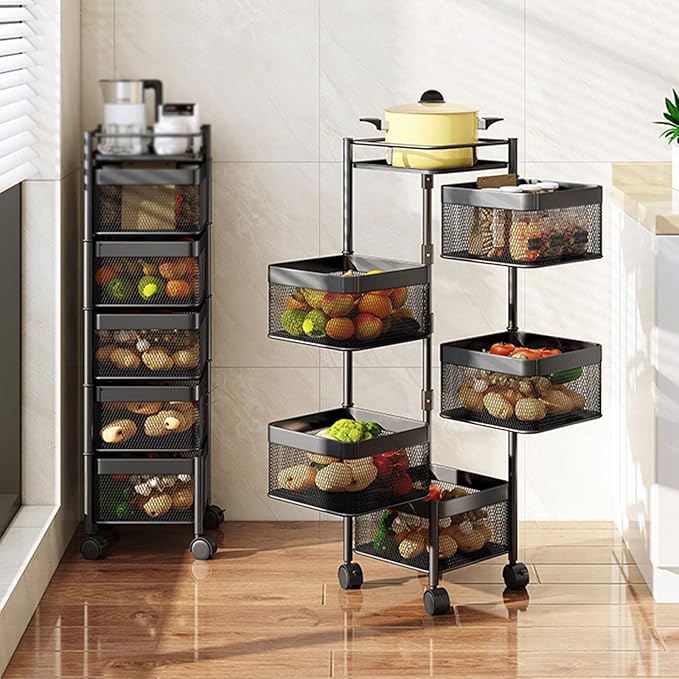 • 【Rotating Vegetable Rack Floor-standing Multi-layer Kitchen】: Made of thick carbon steel frame, it has strong load-bearing capacity and stable structure, not easy to deform.